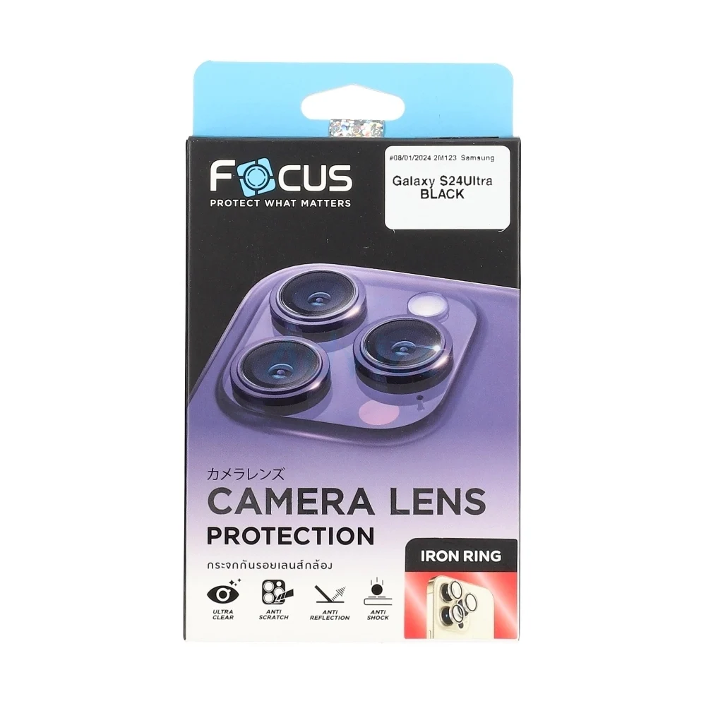 FOCUS ฟิล์มกระจกกันรอยเลนส์กล้อง (ขอบดำ) Iron Ring SAMSUNG S24 Ultra